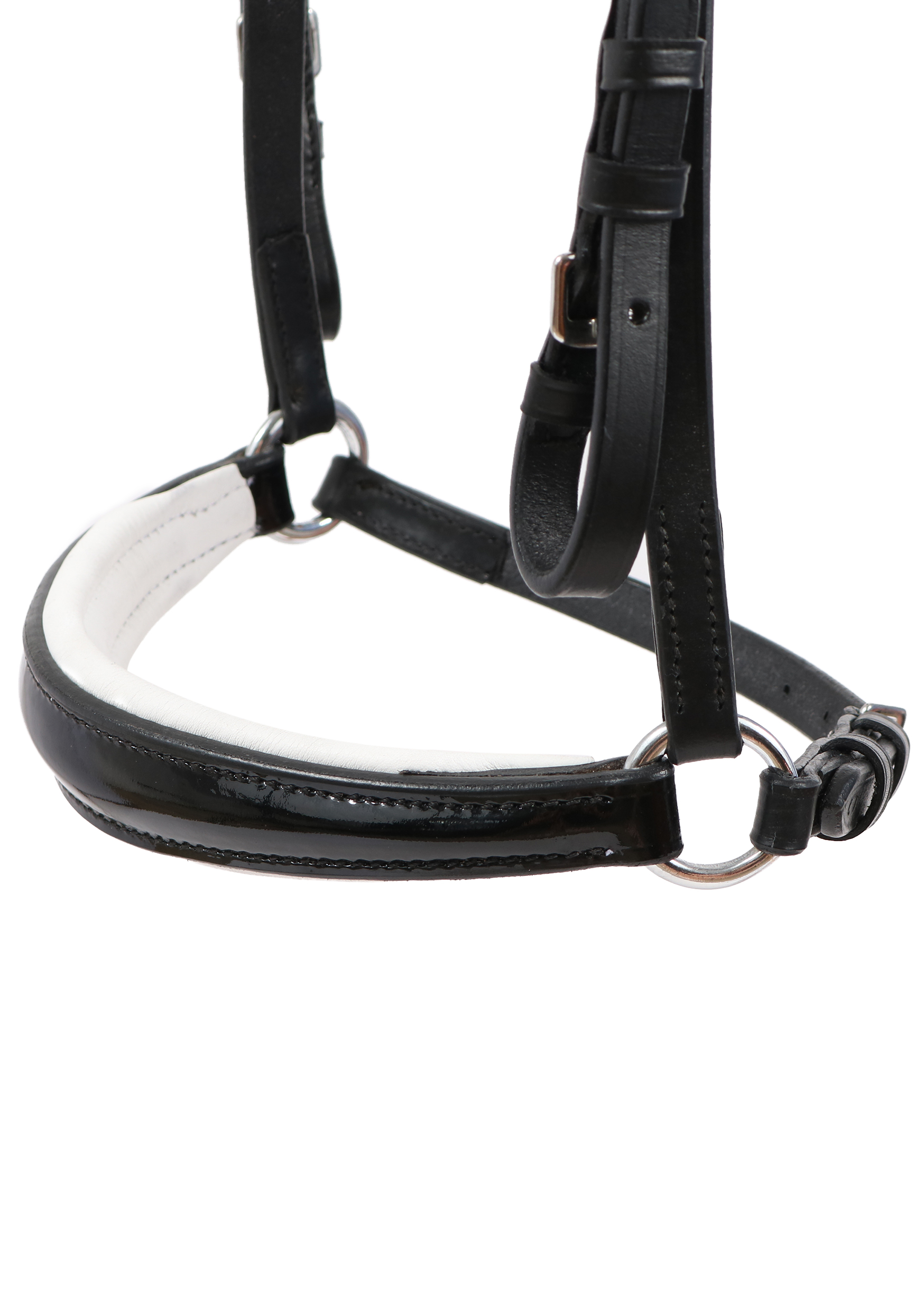 Hans Melzer Trense Valluhn schwarz/silber hannoversches Reithalfter weiß unterlegt LACK